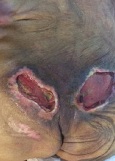 Crescel can transform this threatening reality. Both clinical patients shown below developed pressure ulcers in their tailbone area. The early-stage ulcer was almost fully healed within 6 days. The other patient had 2 Stage-4 tailbone ulcers. Improvement was rapidly apparent, and by 10 months of twice-daily Crescel application, one bedsore was fully healed. The other was very minimal, and no longer a threat to surrounding muscle and bone.