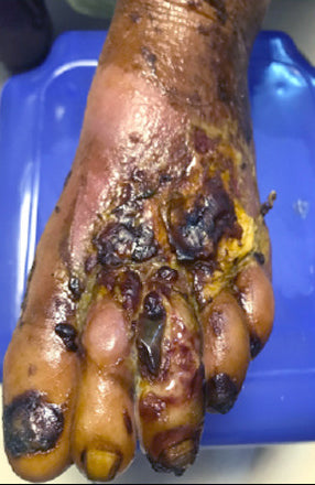 Every year, 1.6 million people with diabetes in the US develop their first foot ulcer. (Globally, this annual number is 18.6 million diabetes patients.) Foot ulcers are the feared end result of a complex chain reaction that begins with the oxidative stress caused by hyperglycemia, the high glucose levels that are the defining sign of diabetes. Treatment for these foot ulcers is extremely costly and extremely inadequate. Up to 25% never heal, two-thirds take more than a year to heal, and more than half of healed ulcers recur. Because diabetes also compromises the immune system’s ability to fight infections, 60% of new foot ulcers eventually become infected. Then treatment effectiveness diminishes even further. Roughly 15% lead to death. About 20% of moderate to severe infections eventually require amputation: part or all of the patient’s foot, or the entire lower leg. Post-amputation, the risk of death rises steeply over the first 5 years.