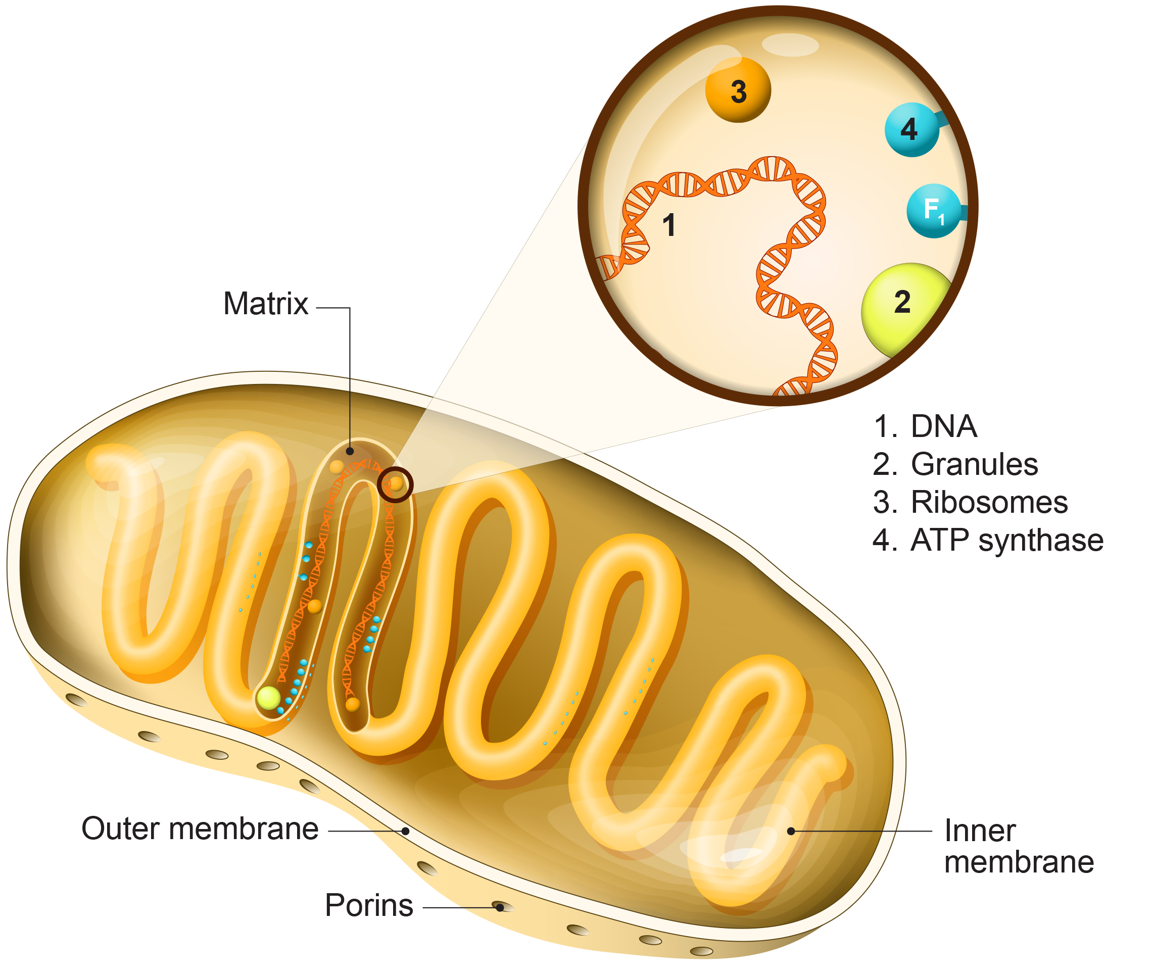 Each of these microscopic organelles is called a mitochondrion. But we always talk about them in the plural—mitochondria—because they work in exceptionally large groups. Each of our cells contains anywhere from several hundred to several thousand mitochondria. Our muscle (which includes our heart) and brain cells contain the highest numbers. This is logical, because one of the basic functions of mitochondria is to produce our energy. (Only red blood cells don’t contain any mitochondria, because their cellular real estate is dedicated to oxygen-carrying equipment.) More specifically, our mitochondria use digested food extracts and oxygen to produce the energy that powers our cells’ biochemical reactions. And they do a great deal more.